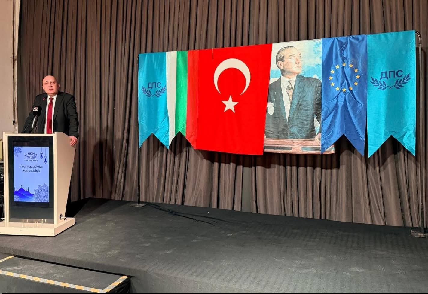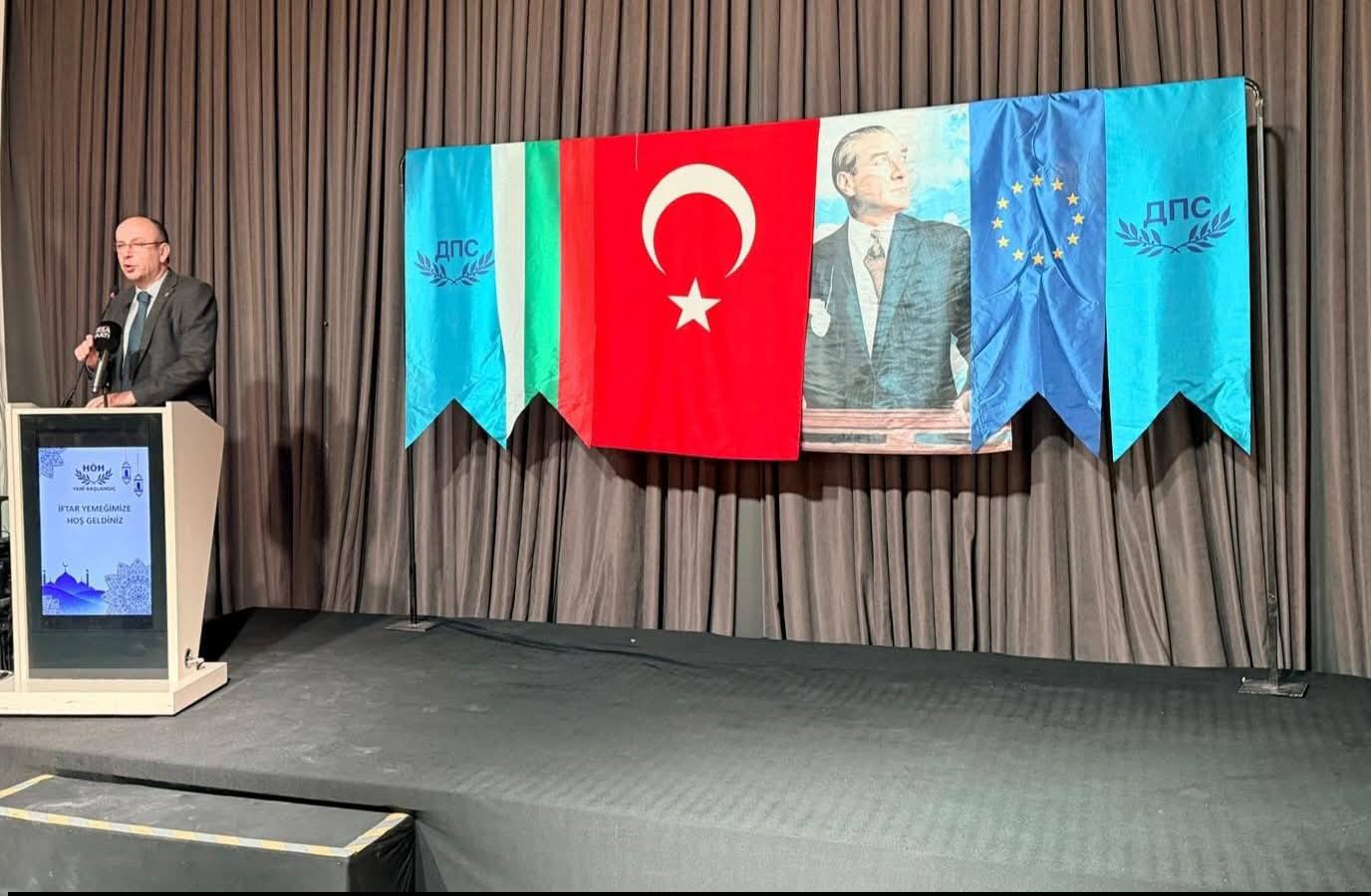 В своето приветствие Ерол Мюмюн изрази удовлетворението си, че са заедно и споделят обща трапеза. Той подчерта обединяващата сила на празниците, важността на тези моменти на единство, сплотеност и съпричастност, които Рамазан носи със себе си. Пожела на присъстващите здраве, благоденствие и ги поздрави с предстоящия Рамазан Байрам. Предаде поздрави и от името на председателя на ДПС Делян Пеевски с пожелания да посрещнат Рамазан Байрам с радост, вяра и надежда за по-добри дни! Подари на нашите изселници мартенички, осигурени от Делян Пеевски, с пожелание за здраве и берекет.