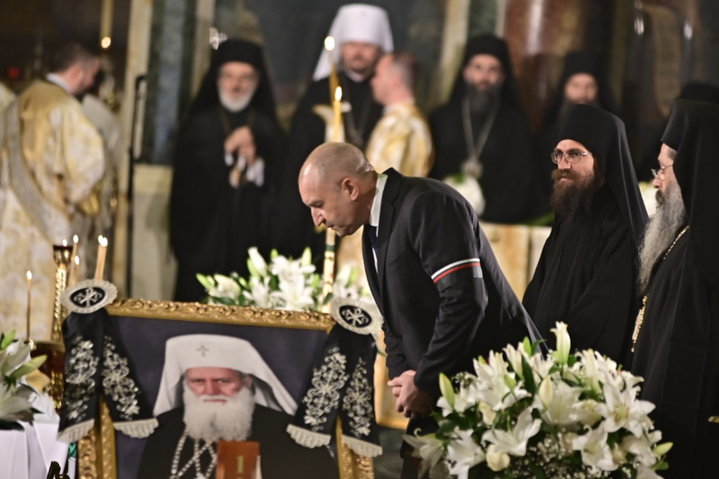 Последен от ВИП държавните персони влезе президентът Румен Радев, който заяви: "Помня как той ме благослови още в началото на първата ми кандидат-президентска кампания. Няма да забравя неговите думи, че вярата в доброто трябва да ни обединява и да ни крепи като народ".