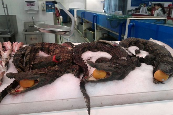 Крокодилското месо е търсен и широко предлаган продукт в китайските супермаркети.