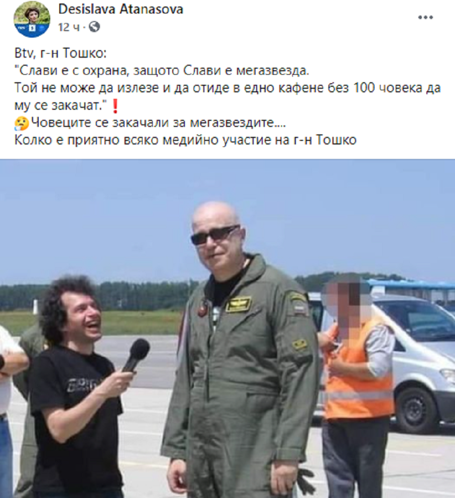 "Слави е с охрана, защото Слави е мегазвезда. Той не може да излезе и да отиде в едно кафене без 100 човека да му се закачат".