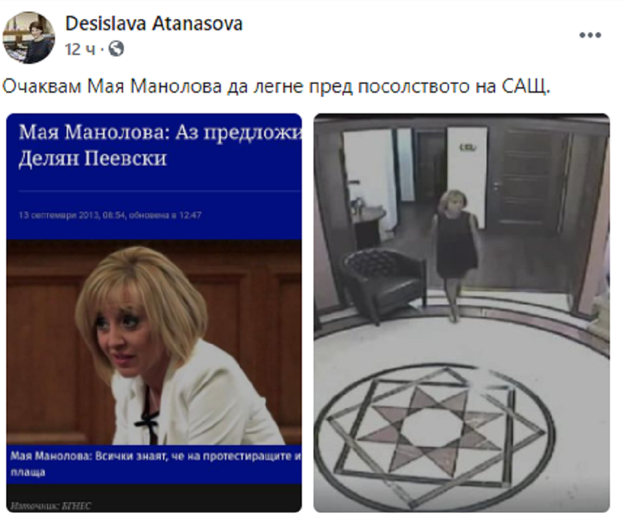 Очаквам Мая Манолова да легне пред посолството на САЩ. Този кратък коментар написа във Фейсбук бившата парламентарна шефка на ГЕРБ Десислава Атанасова.