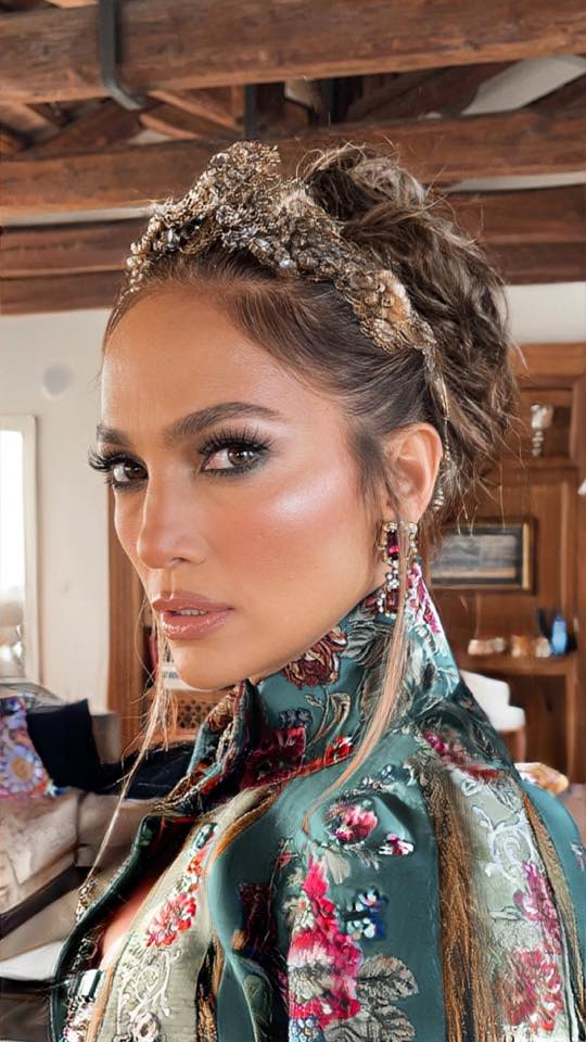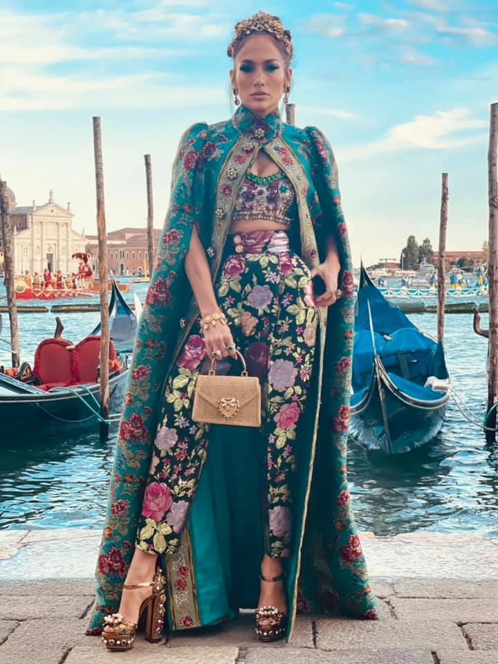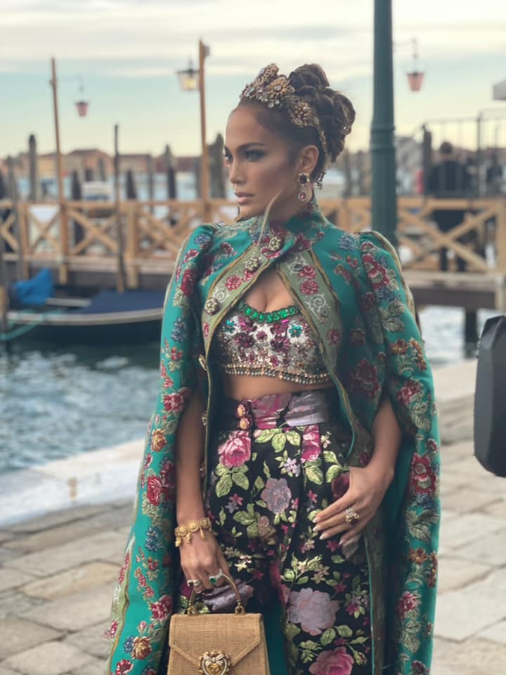 Дженифър Лопес се появи със зашеметяващ тоалет на ревюто на "Долче и Габана" във Венеция. Певицата го комбинира с дълга пелерина и богато украсена диадема.
