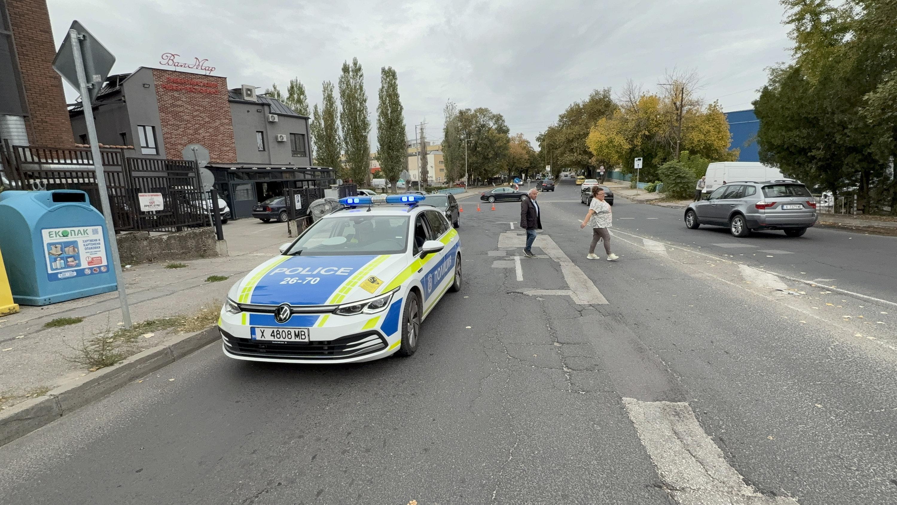 Едната лента на платното бе затворена. Пътна полиция регулираше трафика.