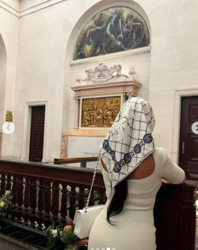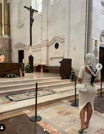 Тя показа снимката от това свято място в профила си в Инстаграм, а модната й комбинация привлече вниманието на мнозина.
