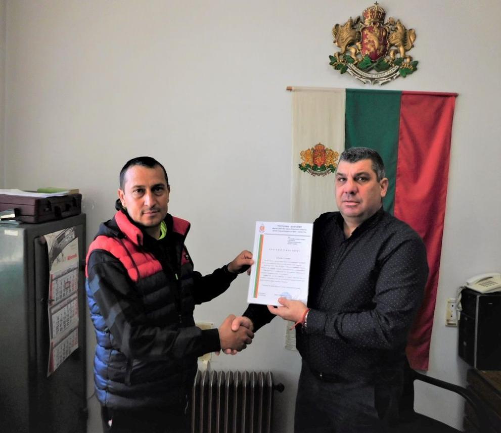 Благодарствен адрес от името на директора на ОД на МВР-Силистра старши комисар Мартин Недялков получи 37-годишен мъж от село Загориче, област Шумен.