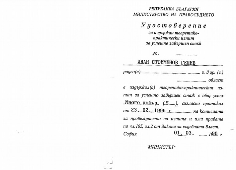 ДОСТОЙНИЯТ КАНДИДАТ: Иван Гешев взима държавните изпити по право с отличен (ДОКУМЕНТИ)