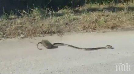 Плъх нападна змия заради бебето си (ВИДЕО)