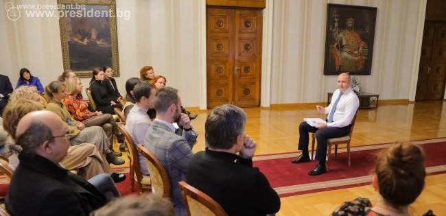 Позитивно е, че въпреки проблемите, актьорският състав на Народния театър е сплотен и получава признанието на публиката. Това заяви президентът Румен Радев, който днес на „Дондуков“ 2 се срещна с представители на трупата на Народния театър „Иван Вазов“, които по рано този месец изпратиха отворено писмо до него. Държавният глава подчерта, че институциите трябва да бъдат партньор на хората на изкуството и да съхраняват достойнството им, така че артистите да усещат подкрепа и да имат свободата и спокойствието да работят.