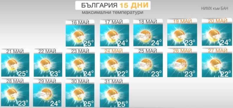 Температурите няма да претърпят съществена промяна. Те ще са близки и малко по-високи от обичайните за този период - предимно между 22 и 27 градуса.