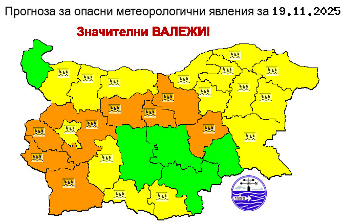 ДЪЖДЪТ НЕ СПИРА: 8 области с оранжев код за опасни валежи, 14 светват в жълто. Бъдете внимателни! (КАРТИ)
