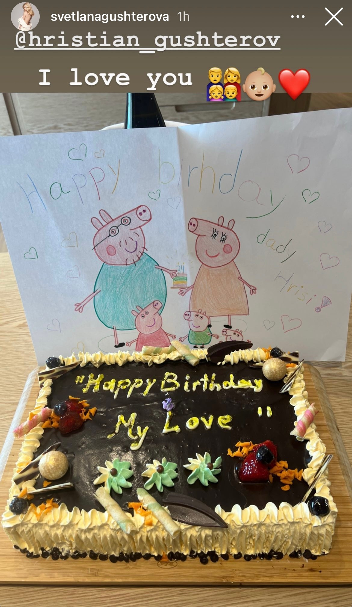 "Happy Birthday dady Hrisi" пише на рисунката на малката Гущерова, на която присъстват баща й, майка й и двете й братчета.