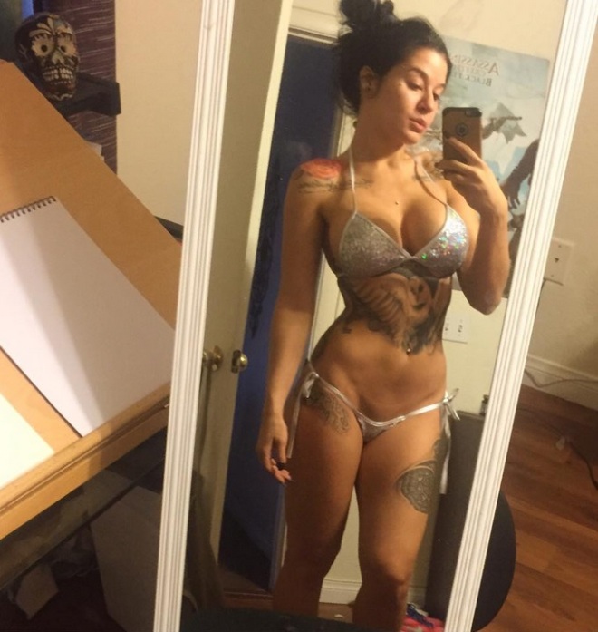 Обича татуировките и с удоволствие ги демонстрира по време на еротичните си фотосесии.
