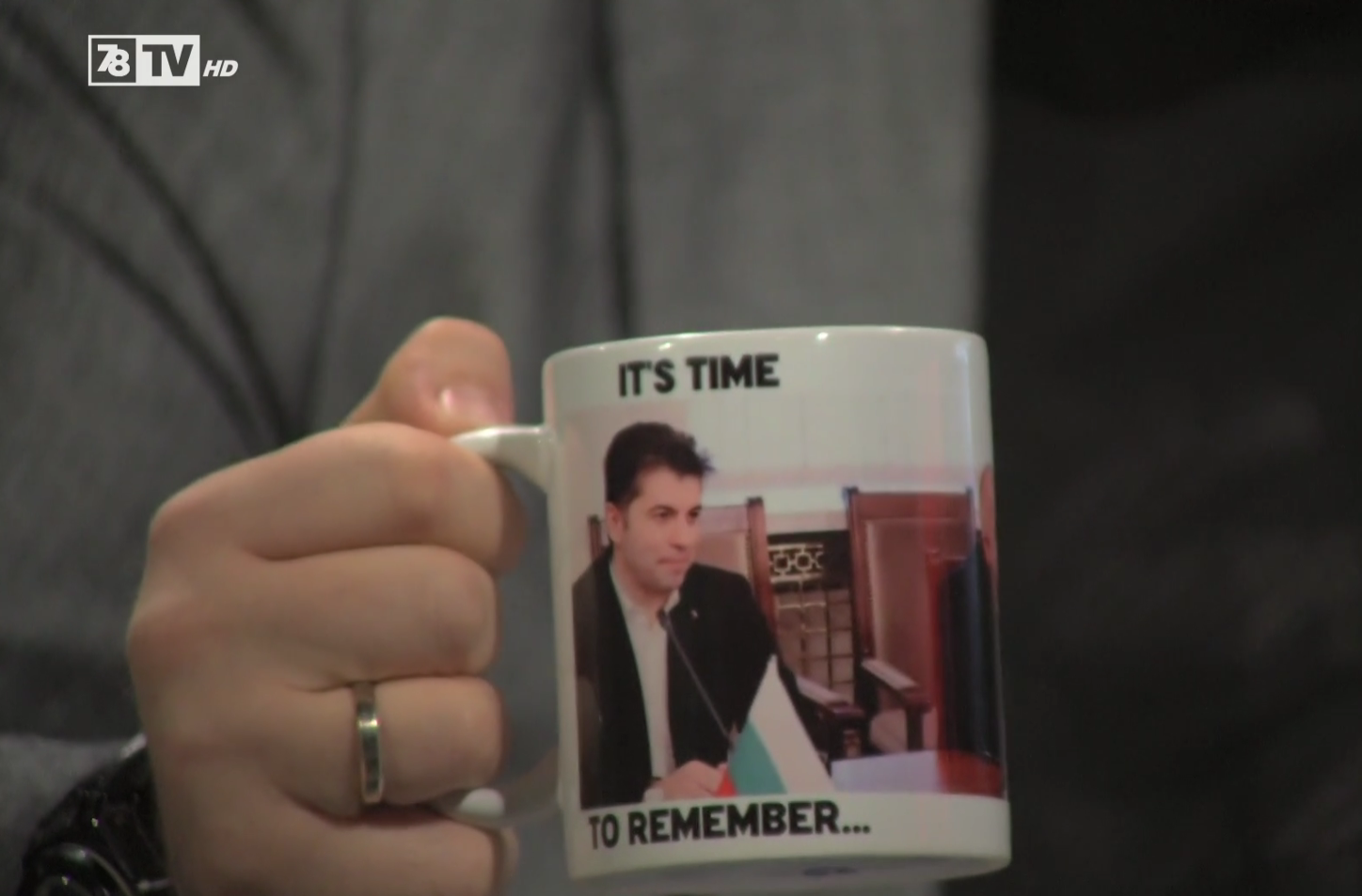 Чашите с политически послания в телевизионните студиа взеха да се превръщат в тренд. След като вече бившата водеща на "Тази сутрин" по bTV Мария Цънцарова се появи в ефир с чаша с надпис "Time to make real change" (Време е да направим истинска промяна - б.р.), от "Има такъв народ" продължиха традицията - депутатът Станислав Балабанов снощи утоли жажда от чаша "Its time to remember" в чест на "Продължаваме промяната", видя ПИК.
