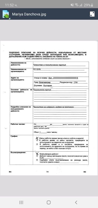 Евродепутатът предостави на ПИК и декларация на свой сътрудник, от която става ясно как се декларира политическата принадлежност: