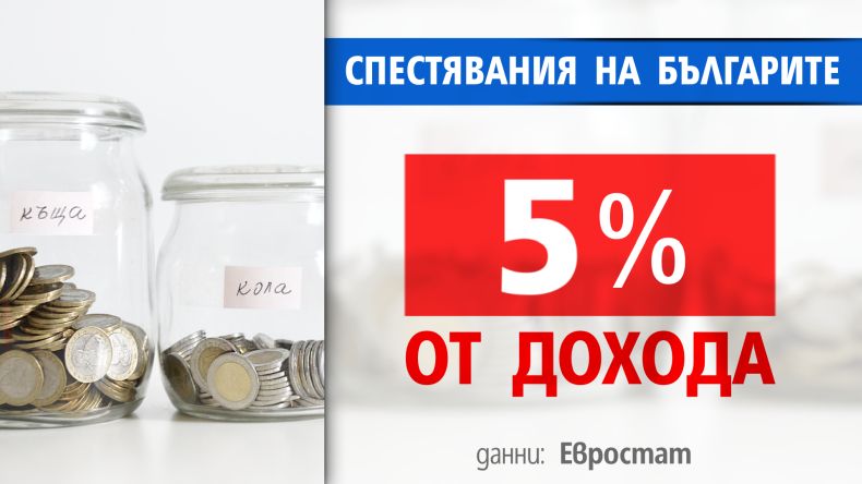 Евростат отчита, че средно българите заделят 5% от дохода си. И това е най-големият дял, откакто се измерва този показател в Евросъюза.