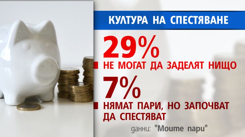 Според данни на финансови анализатори обаче, една трета от българите не могат да заделят нищо. А 7 процента се канят да започнат да спестяват, въпреки че в момента нямат заделени пари, съобщава Нова телевизия.