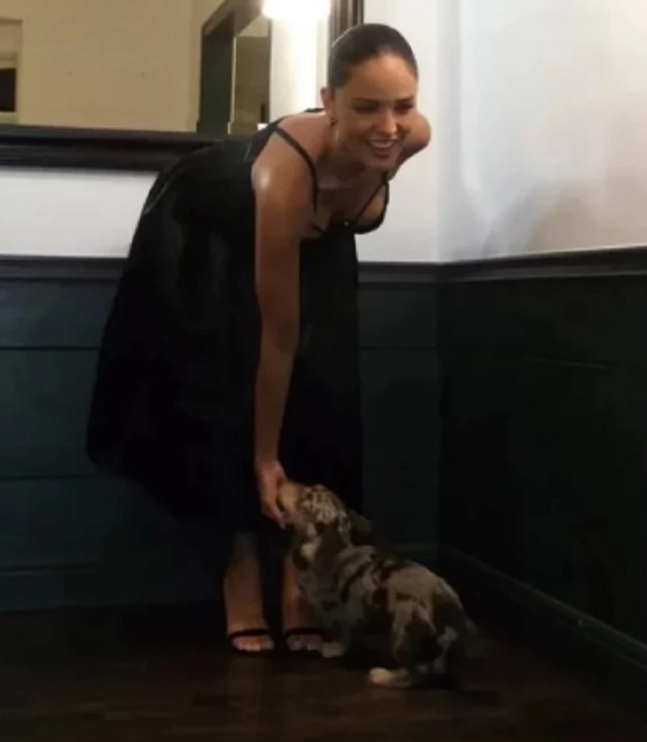 Красавицата избра да си партнира с... Пеперони. Кучето на двойката високо оцени елегантния тоалет на актрисата - елегантна черна рокля с дантела на "Каролина Херера".