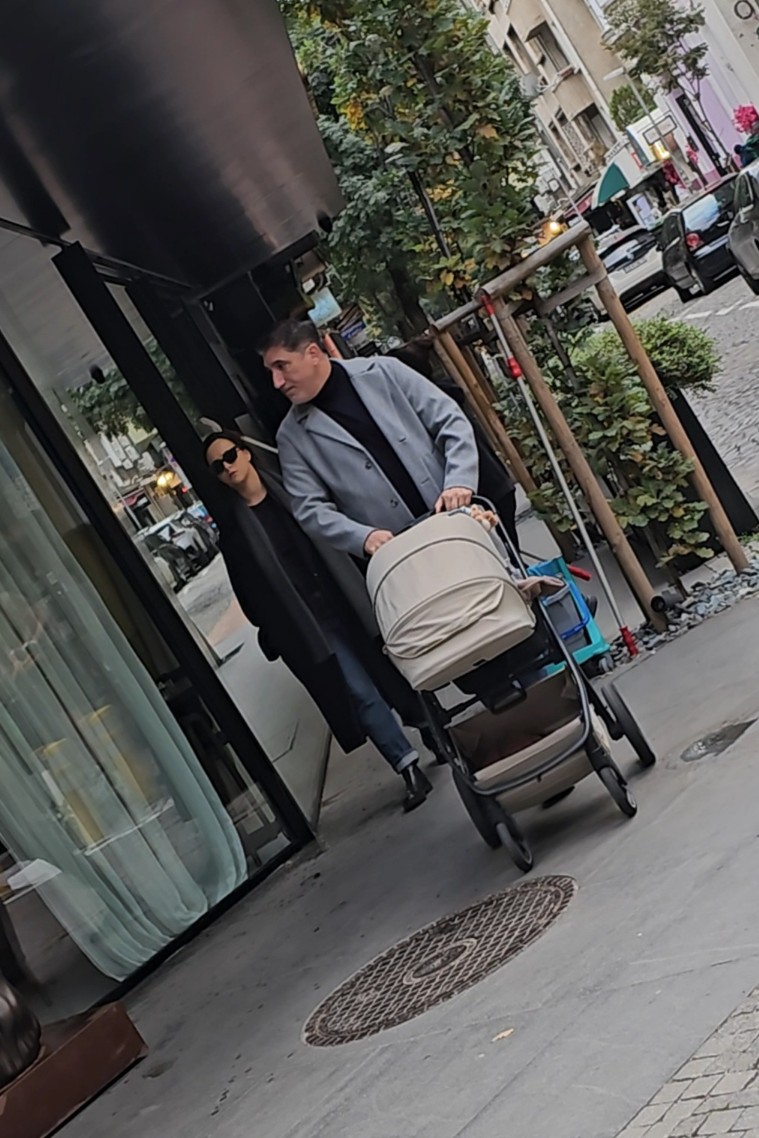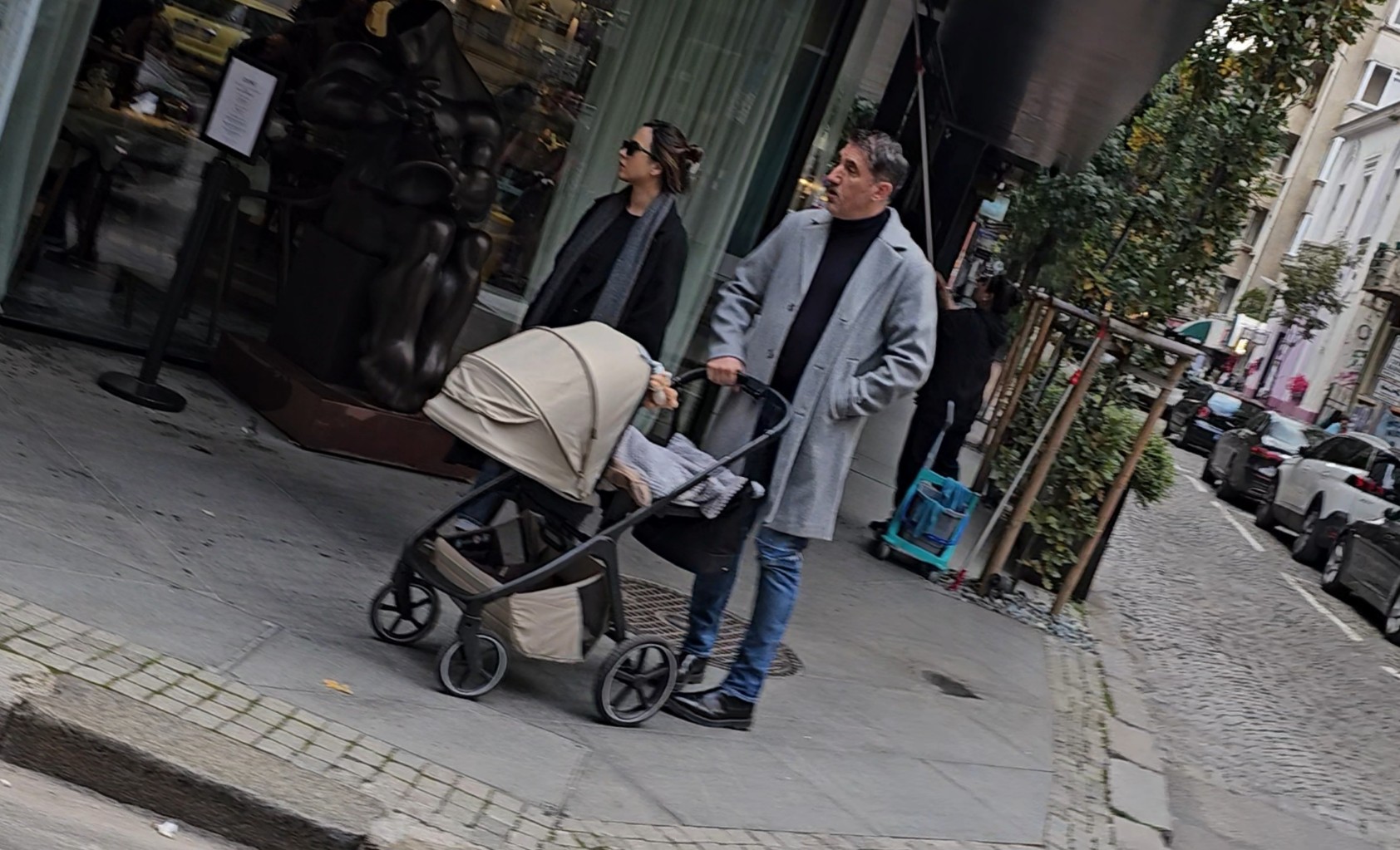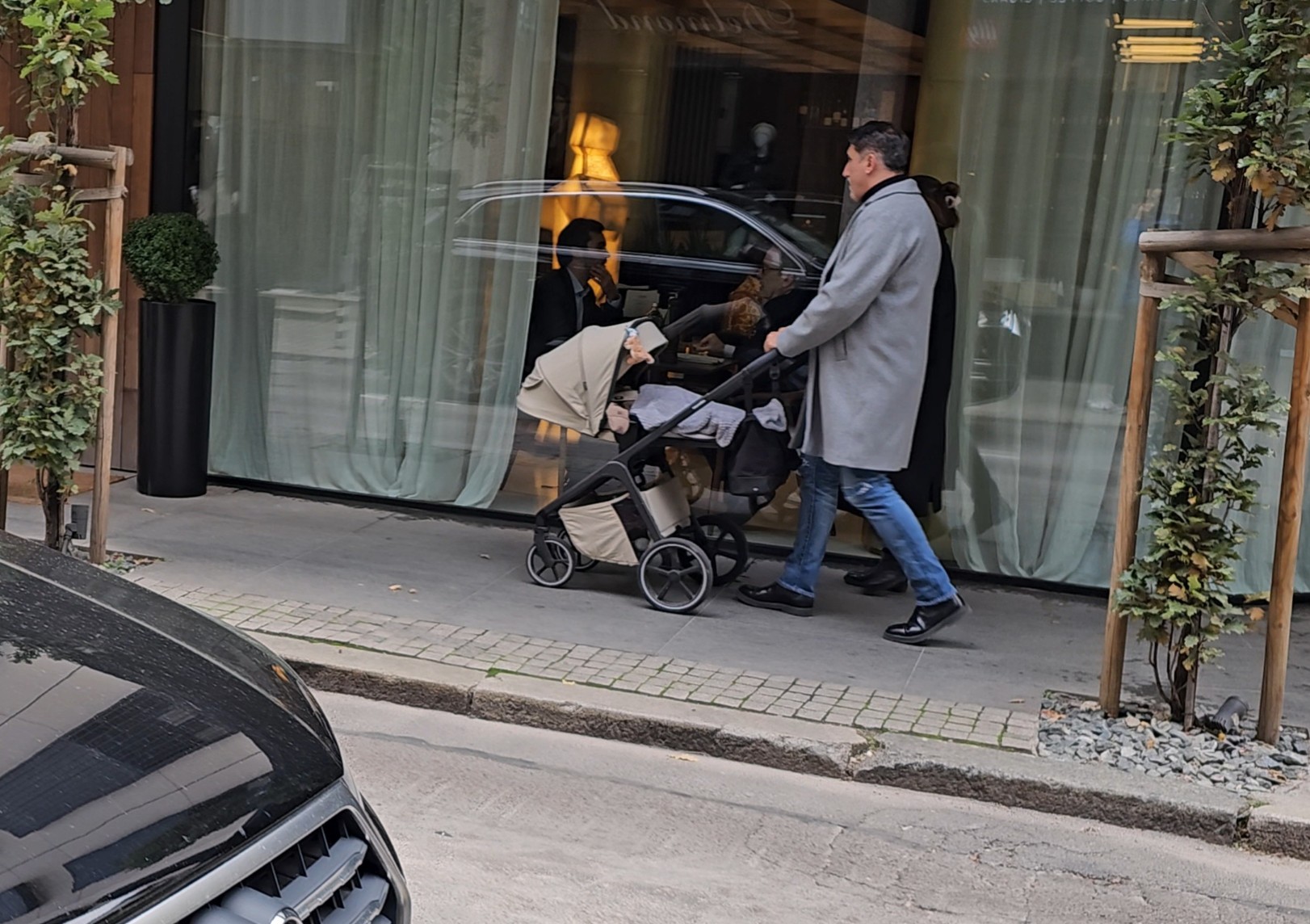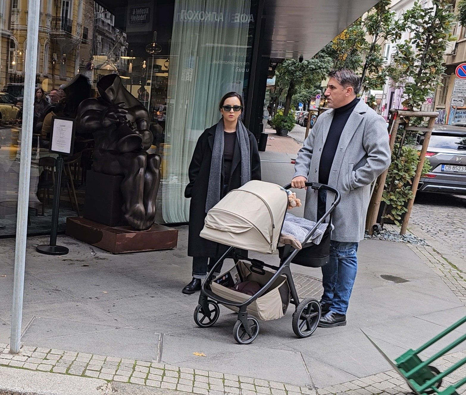 Актьорът и водещ Башар Рахал изведе бебето на разходка в центъра на София. Той бе засечен от папараците на ПИК в часовете преди обед.