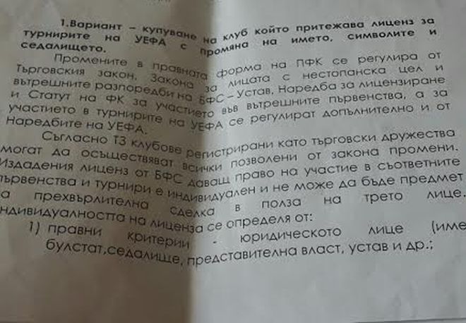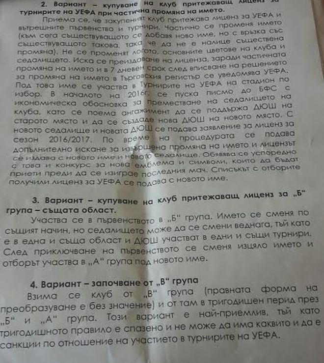 Ето какво предвижда вариантът - купуване на клуб притежаващ лиценз за "Б"-група в същата област.