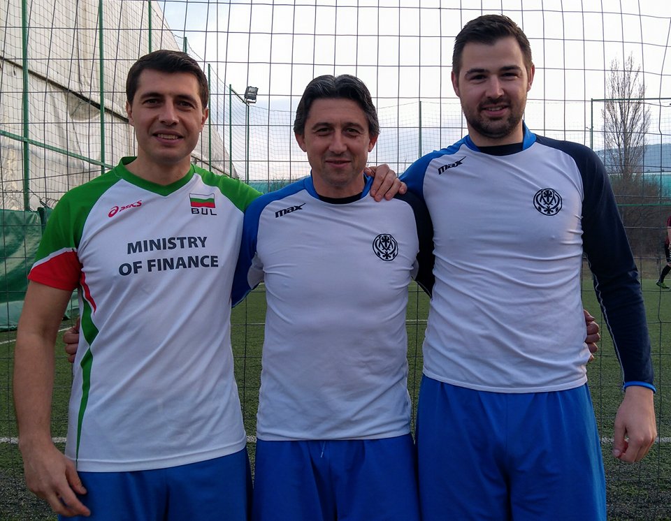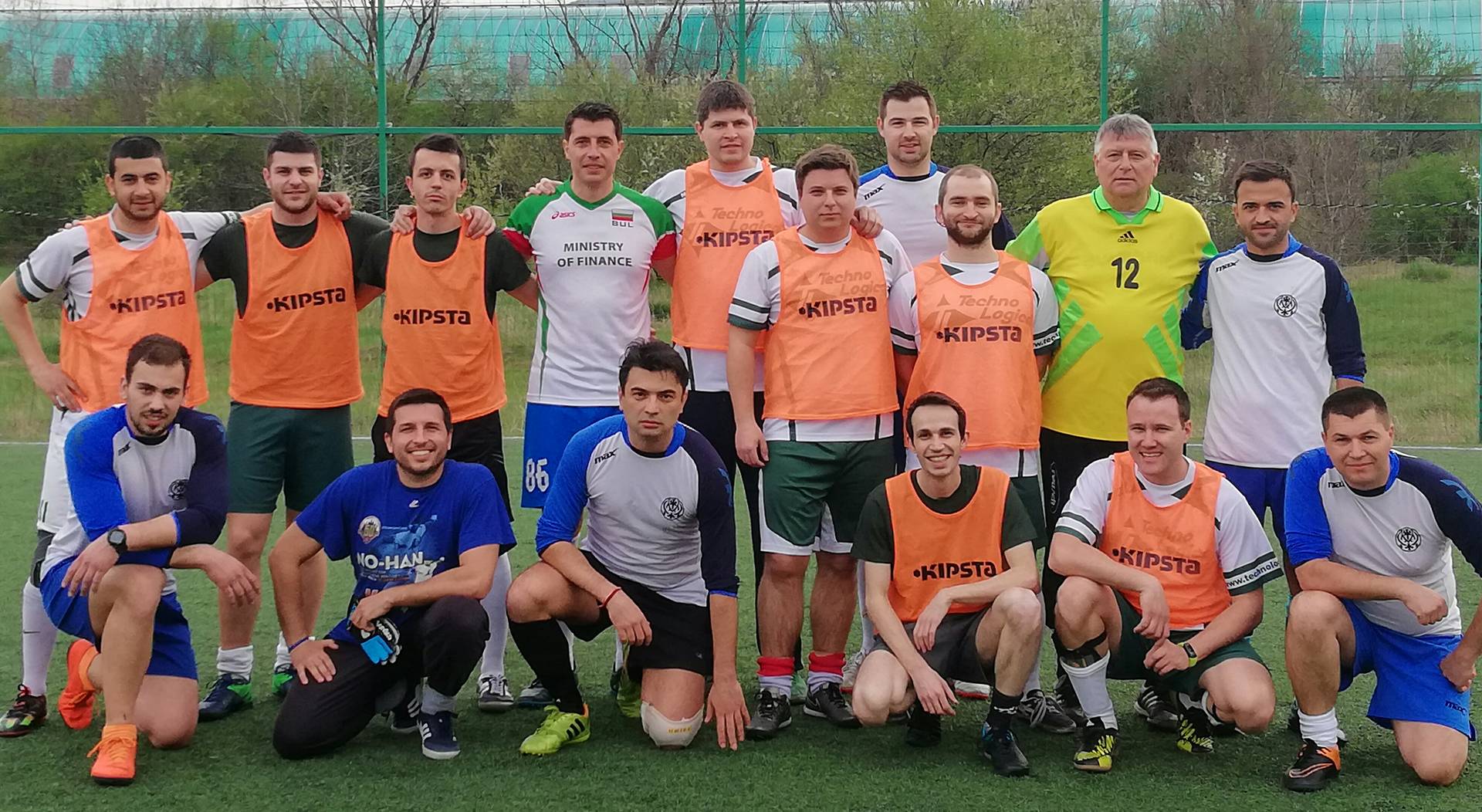 В напрегнато дерби футболният отбор на Министерството на финансите (МФ) елиминира в два мача при разменено гостуване трудно тима на известна българската софтуерна фирма. Срещата завърши с общ резултат 11-10 в полза на МФ, а за това свидетелства и публикация на лидера на финансистите – популярният Кирил Евтимов, във Фейсбук.