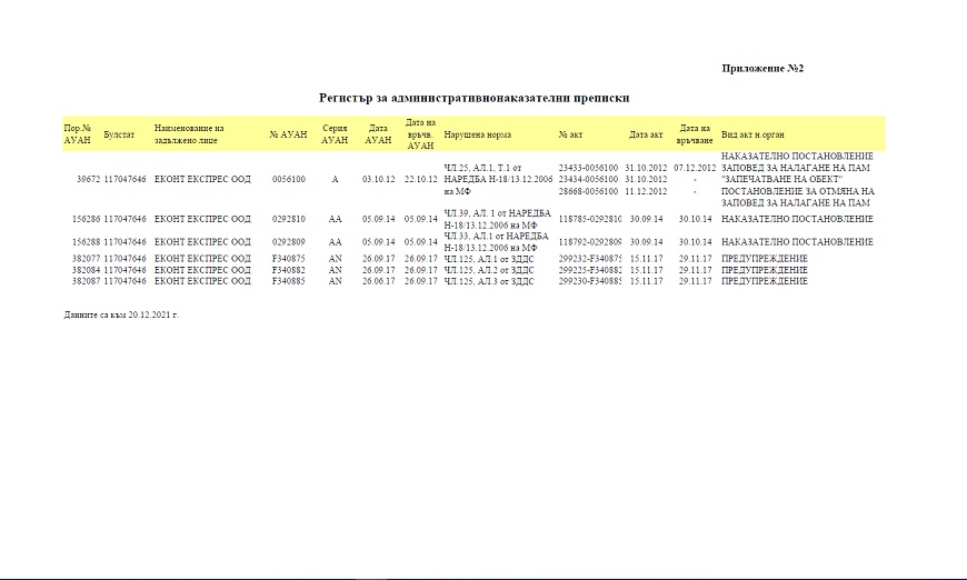 Предоставените данни са от информационните системи на НАП към 20.12.2021 г.