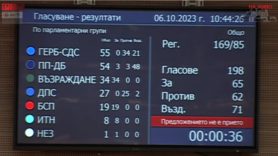 Щом проектът не събира три четвърти от гласовете на депутатите се смята, че не е приет.