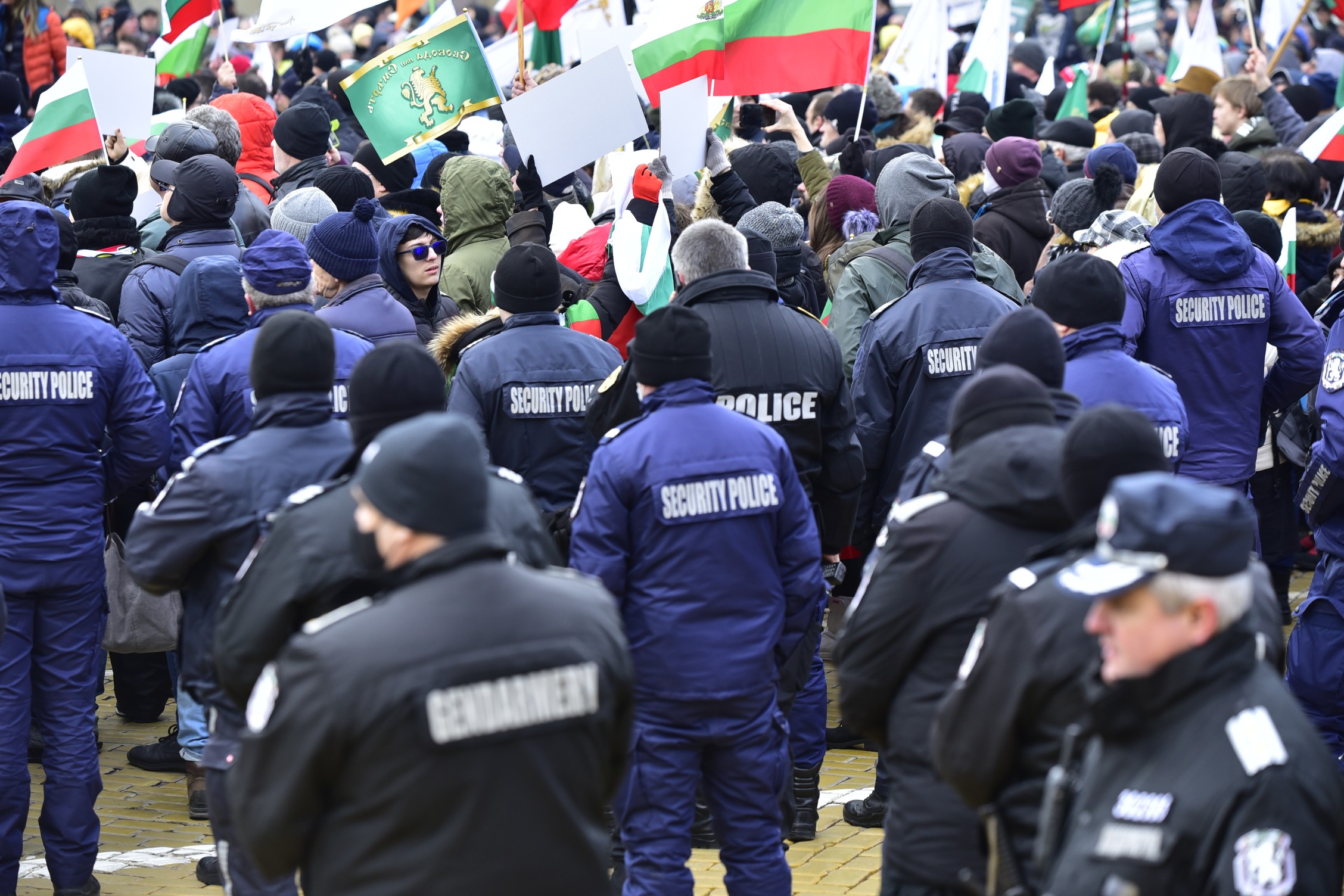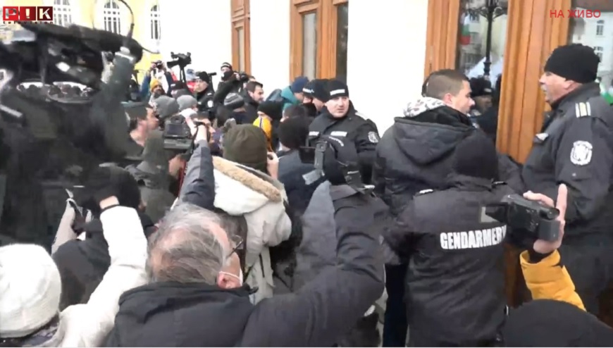 В 13:15 часа множеството направи опит да пробие кордоните на полицията, за да влезе в сградата на парламента. Настана бутане, след като униформената редица не отстъпи пред хората, които искат да стигнат и влязат в Народното събрание. По микрофона те на няколко пъти бяха призовани да отстъпят пред гражданите и да ги пропуснат безпрепятствено. "Господа полицаи, това е вашият миг", провикна се към тях Деян Николов от "Възраждане", който е нещо като идеологически ръководител на митинга.