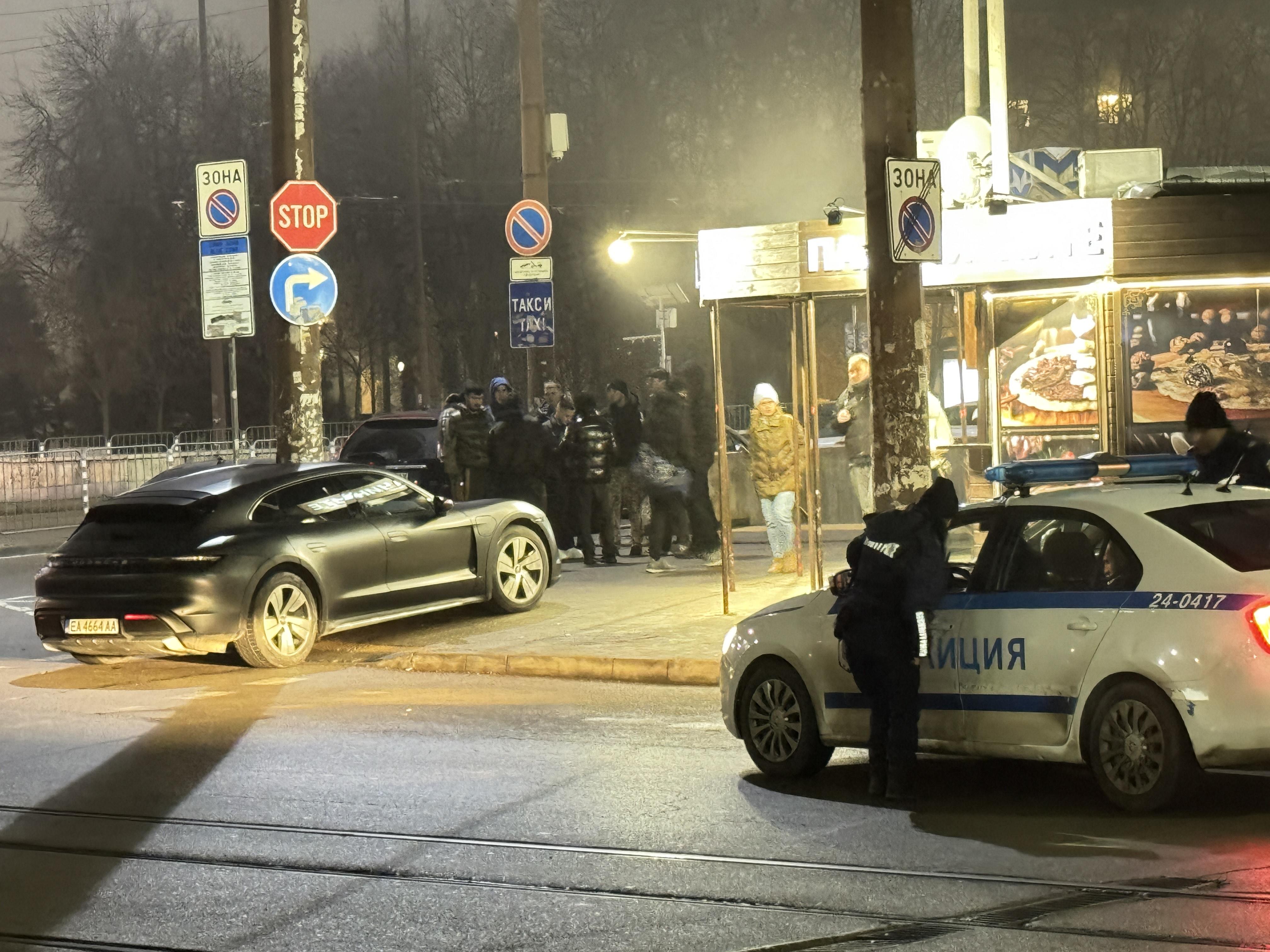 ЕКШЪН ПО ТЪМНА ДОБА: Луксозно порше "кацна" пред заведение до НДК (СНИМКИ)
