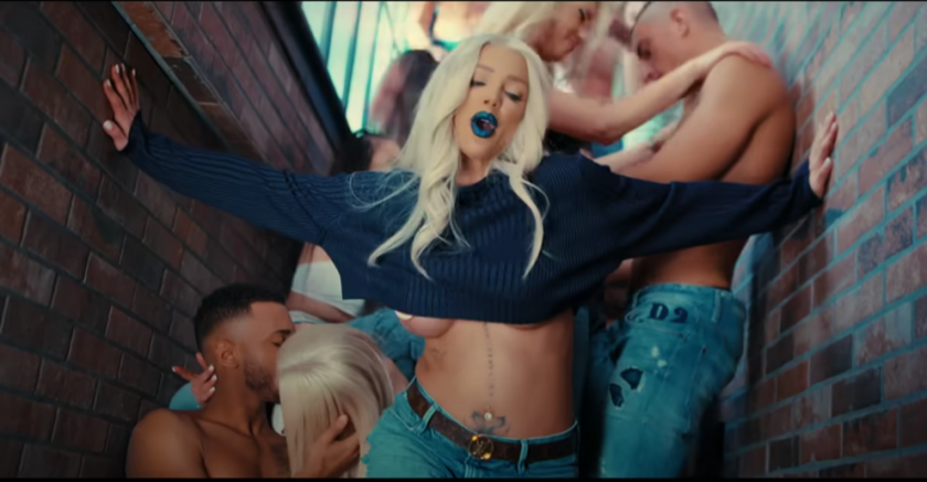 Някои моменти от клипа, в който участва Ванеса - позната от последния "Биг Брадър" и приятелка на певицата, напомнят на видеото на американската звезда Бритни Спиръс "I’m Slave 4 U".