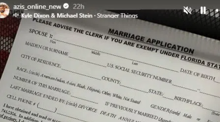 Азис показа как се готви да попълни документи за сключване на брак в американския щат Флорида.