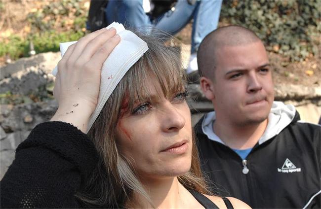 Третият пострадал е момиче, което е с кървяща рана, в предната горна част на главата. Самото момиче коментира, че е било ударено от полицаи. То стана причина протестиращите да започнат да хвърлят камъни по служителите на жандармерията.
