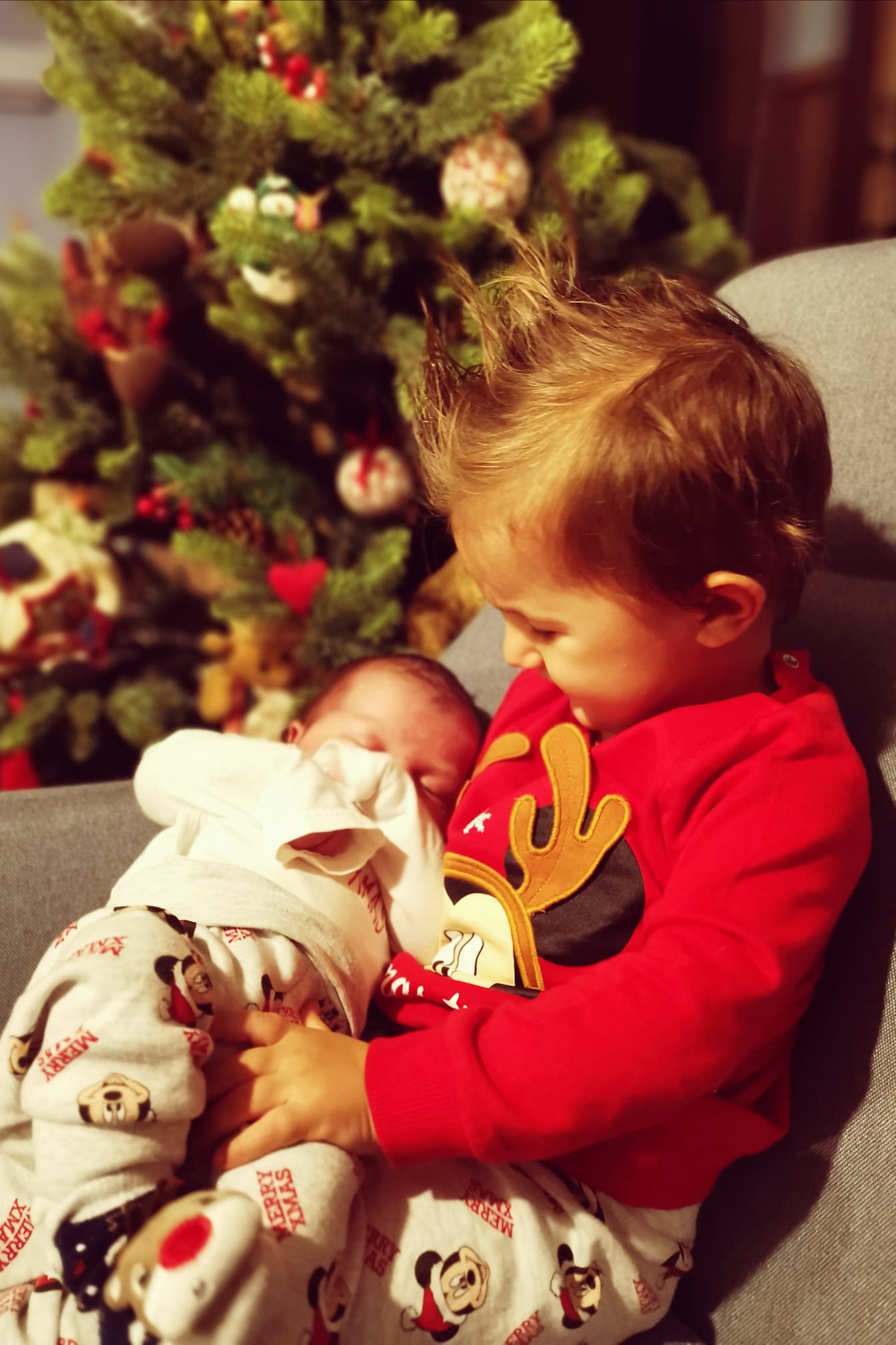 На снимката баткото Александър държи в обятията си малкото си братче.
