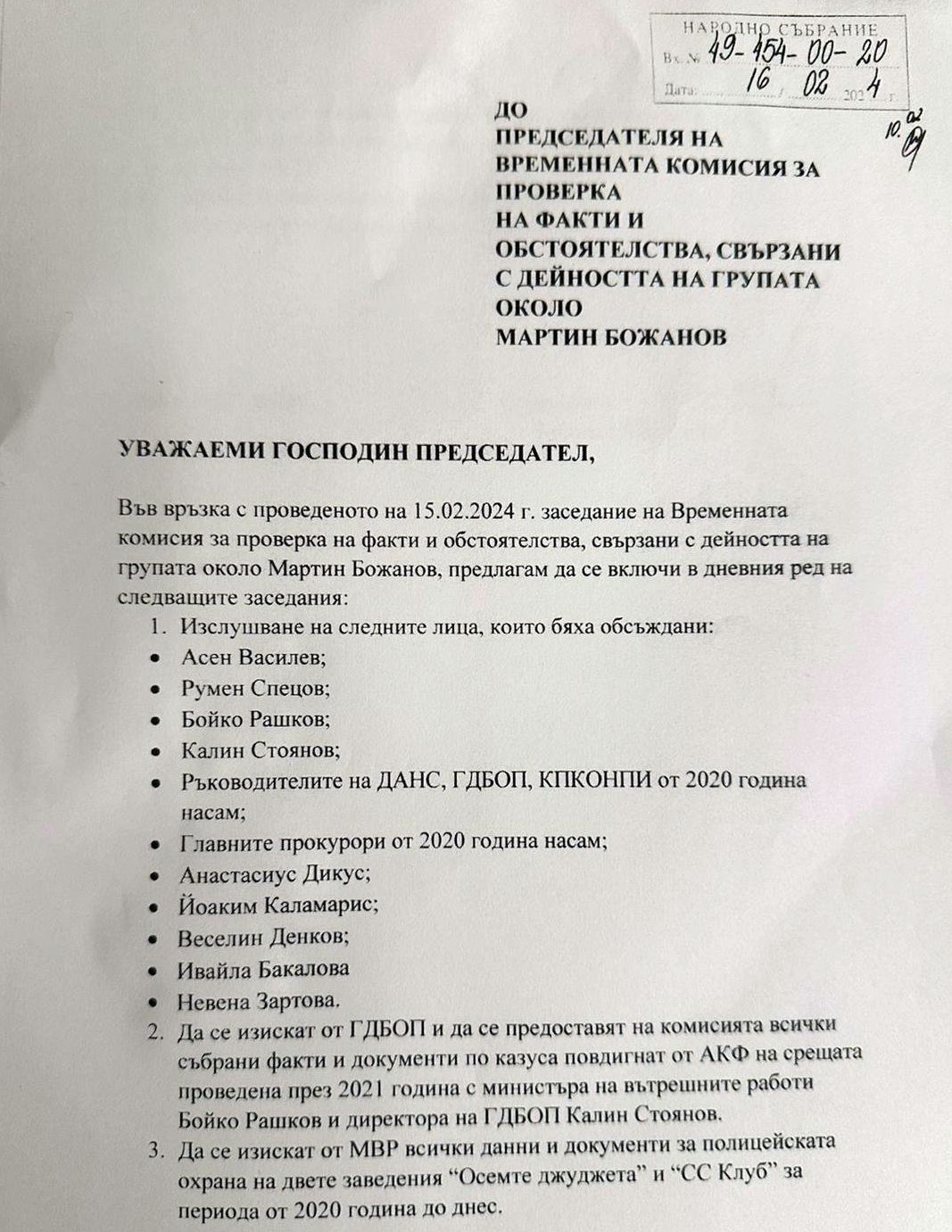 ПИК успя да се сдобие с писмото от депутатите на "Има такъв народ" до Никола Минчев, председателя на временната комисия в парламента, създадена, за да разследва дейността на разстреляния Мартин Божанов - Нотаруиса, да бъдат изслушани високопоставени лица от изпълнителната и съдебната власт, както и различни държавни служби и служби за сигурност.