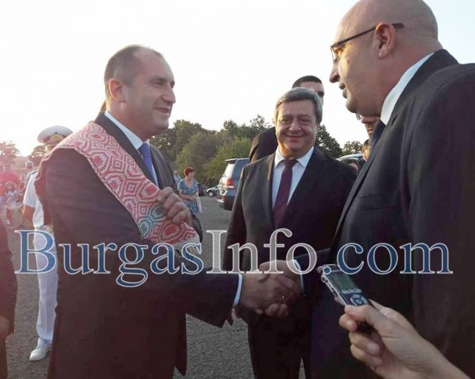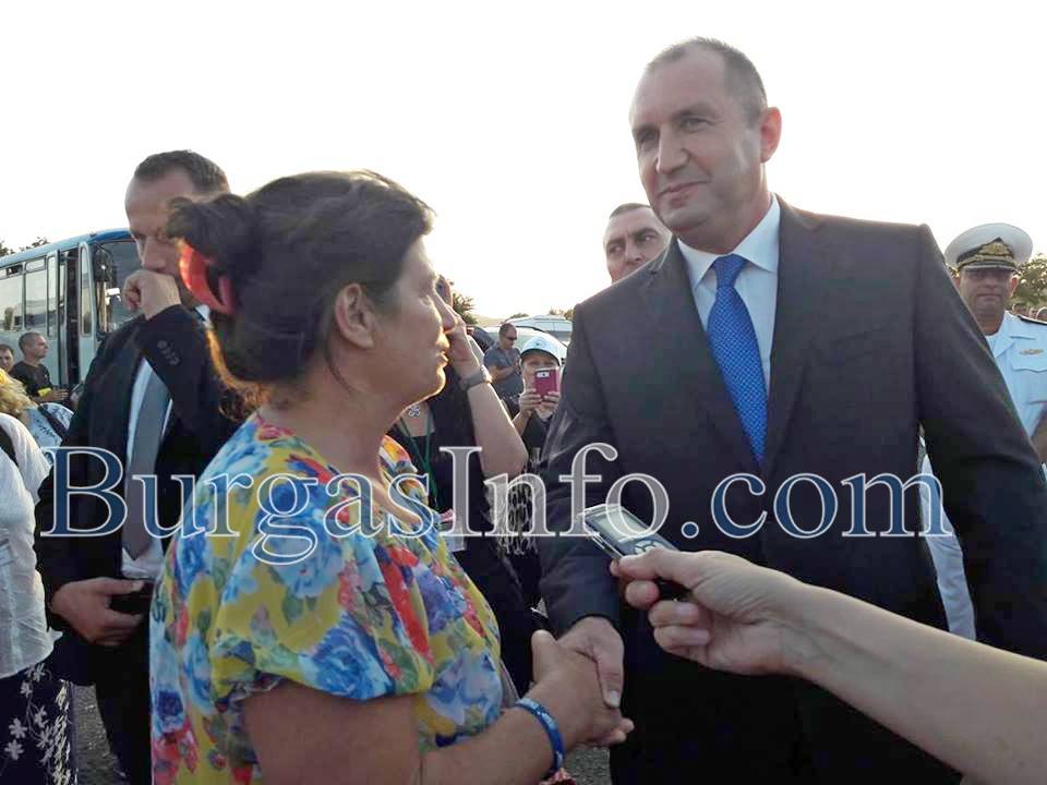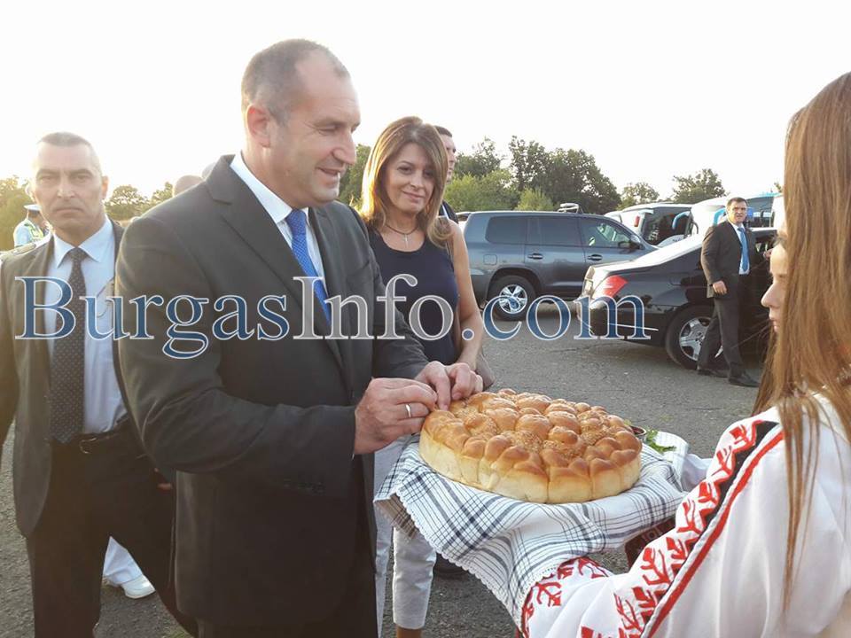 С овации и скандирания „Добре дошъл“ бе посрещнат на Петрова нива президентът Румен Радев. Той пристигна със съпругата си Десислава. Първа към държавния глава се втурна баба Каунка от село Тънково, която го окичи с везана кърпа. „Вашият дядо е живял в Тънково и е бил съсед с моите роднини“, обясни гордо жената, цитирана от "Бургас Инфо".