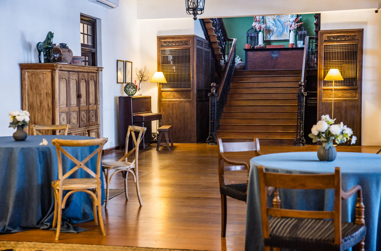 Интериорът на имението напомня художествена галерия - с подбрани артефакти, скулптури и символи от местната култура, които допълват усещането за уникалност и стил.