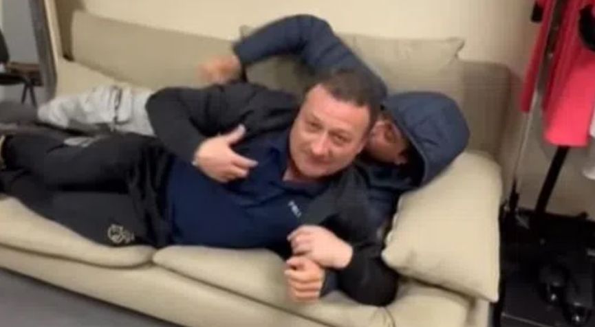 Участникът, който открадна сърцата на публиката с имитациите си на Лили Иванова, си почива на диван в гримьорната, когато водещият нахлува при него. Рачков бързо се намърдва на леголото и прегръща току-що събудилия се Владо, който не може да скрие усмивката си, писа "Hotnews".