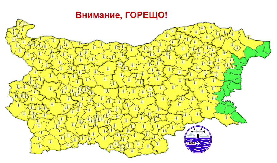 ЖАР ОТ НЕБЕТО! Термометрите почти докосват 40 градуса, жълт код за опасни жеги в цялата страна (КАРТА)