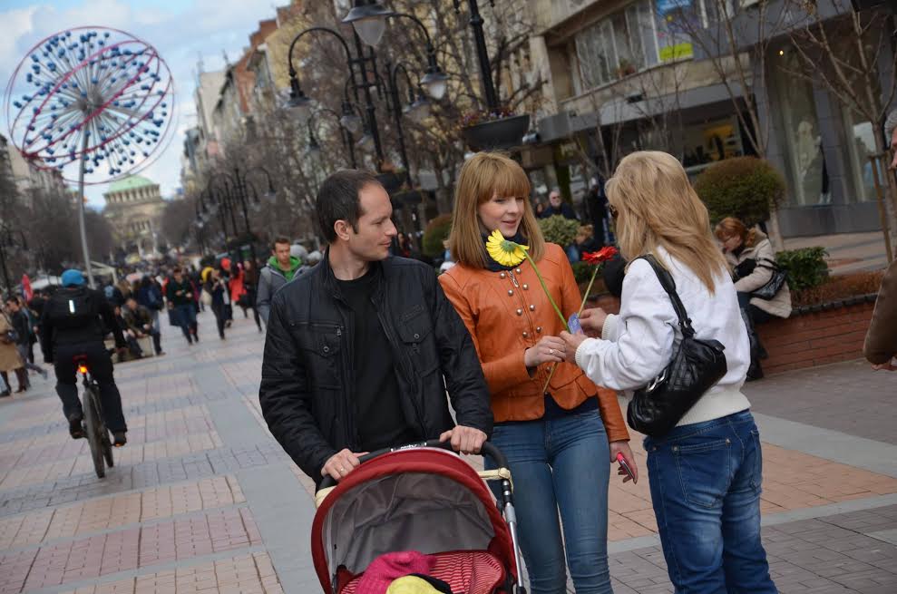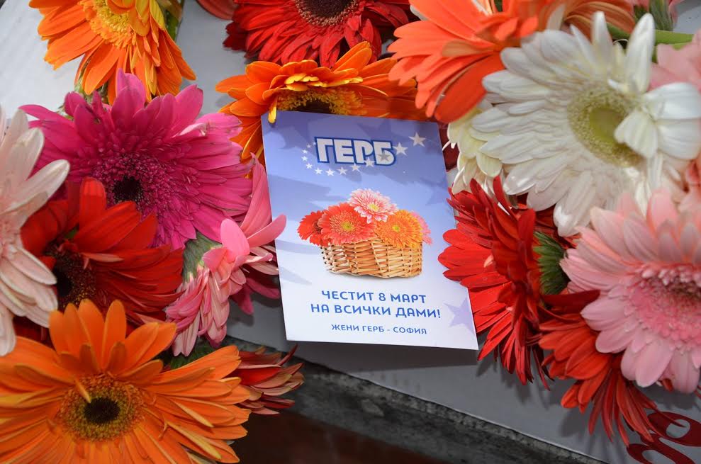 Дамите от ГЕРБ-София зарадваха с гербери жените на столичния булевард "Витоша" по случай Международния ден на жената 8-ми март.
