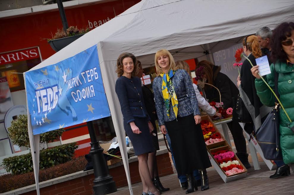 Представители на дамската структура на ГЕРБ от различни столични райони ще посетят празничната шатра на ЖГЕРБ-София до края на деня, за да поздравят жените за техния празник.