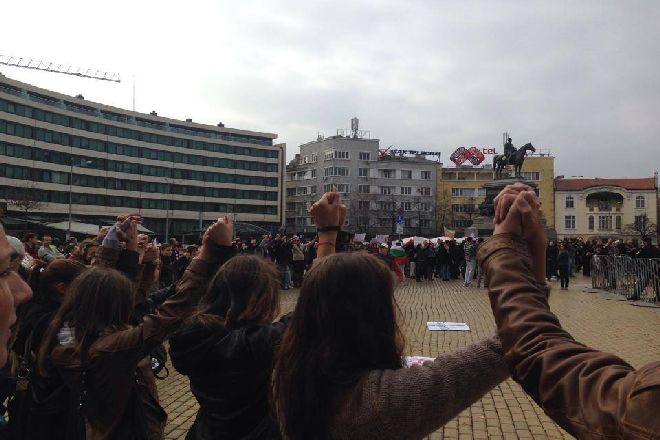 Протестиращите студенти и университетски преподаватели обградиха с жива верига Народното събрание. Те отново настояха за незабавната оставка на правителството на Пламен Орешарски и провеждането на нови избори.