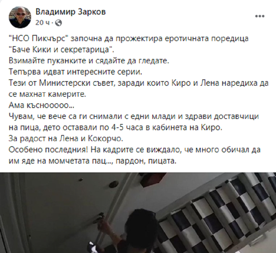 Журналистът Владимир Зарков: Започна прожектирането на еротичната поредица "Баче Кики и секретарица". Идат интересните серии от МС