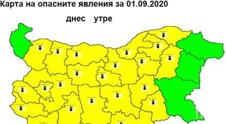 Предупреждението е в сила за областите Кърджали, Хасково и Ямбол. В тези области максималните температури ще достигнат 36-37°.