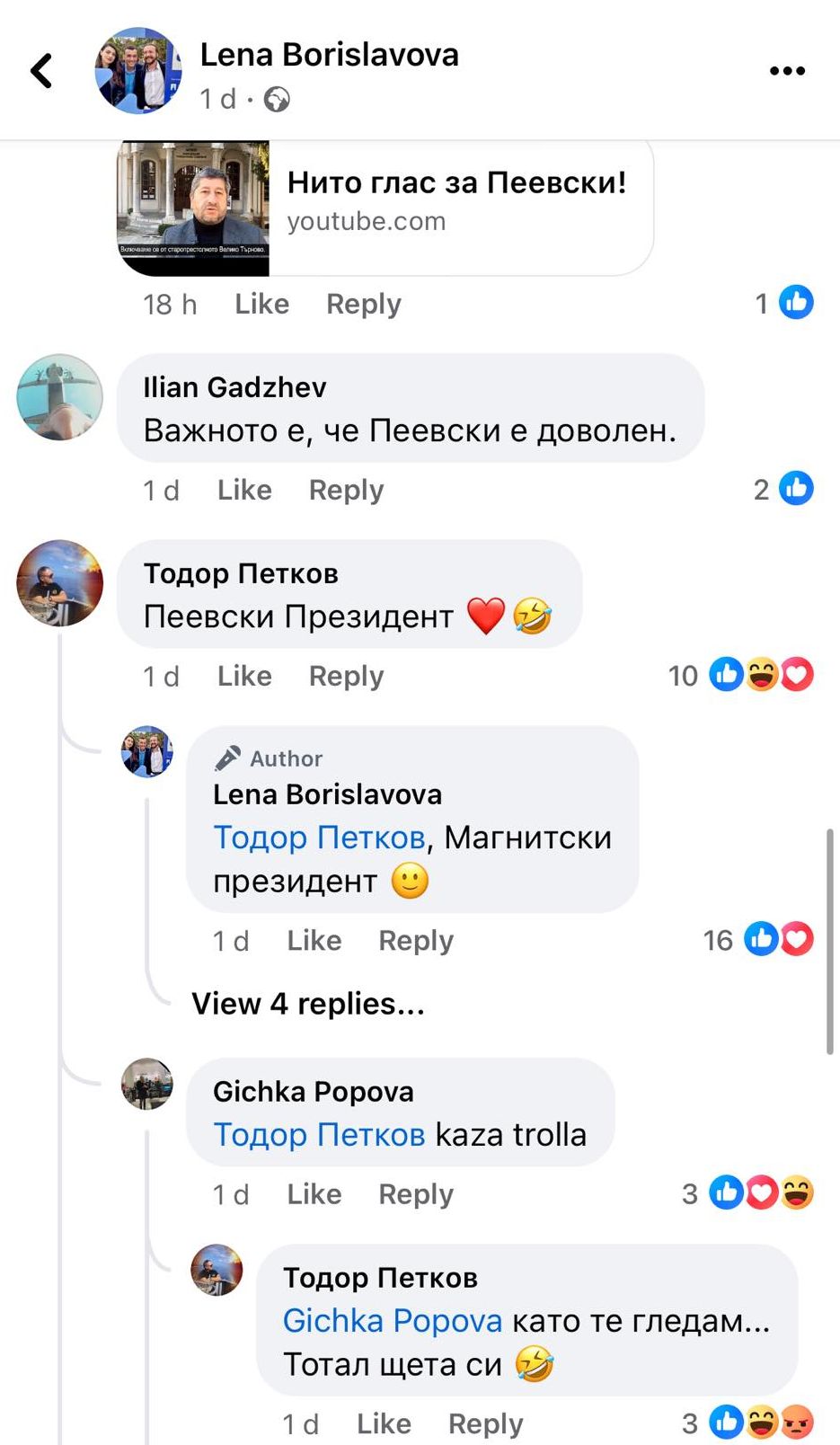 Заради начина, по който се развиват отношения между ПП и Делян Пеевски, дори предложиха на Лена да го издигнат за президент. Не е тайна, че част от промените в Конституцията сглобката направи, за да удари по Румен Радев и да ограничи прамощията му.