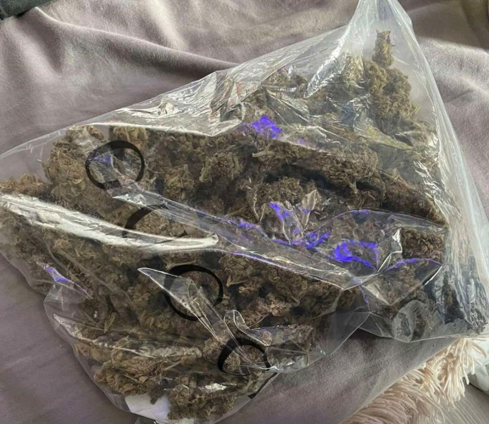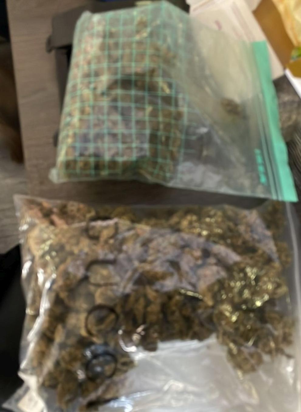 Зад гипсокартон те намерили мелничка с остатъци от суха тревиста маса, във вътрешността на окачен таван открили два плика с около 300 грама суха тревиста маса, реагираща на марихуана. Плик с 13 таблетки амфетамин пък бил намерен зад телевизионен шкаф, а още седем идентични таблетки - на перваза на прозорец.