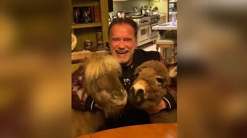 ЗВЕЗДА СЪС СЪРЦЕ: Арнолд Шварценегер прекарва карантината с магаренцето Лулу и понито Уиски (СНИМКИ)