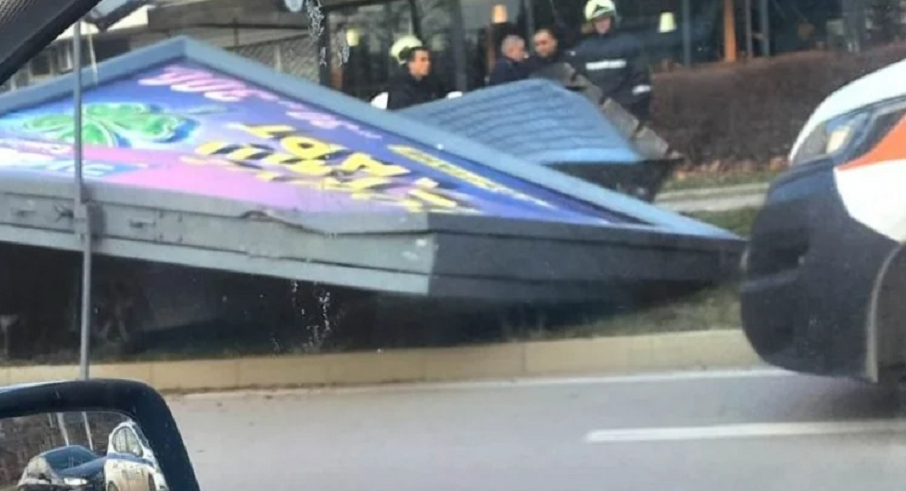 Там автомобил се е врязал в билборд и го е отсякъл.