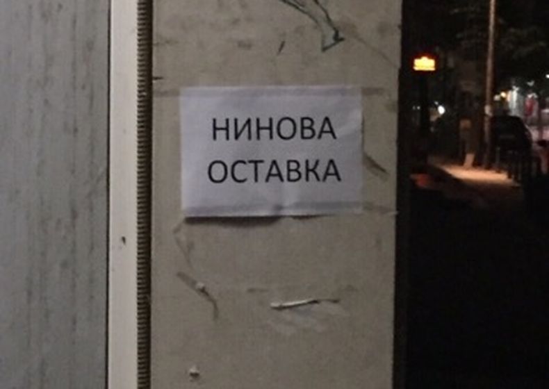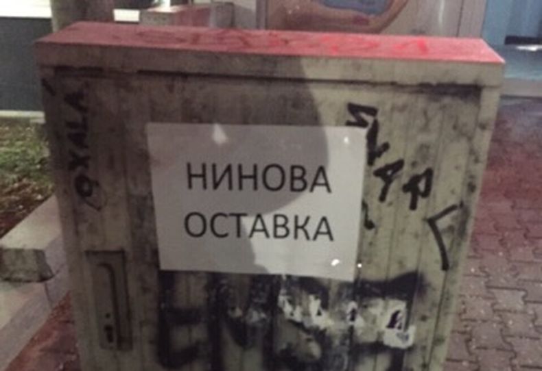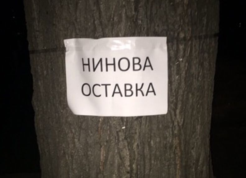 Плакати с „Нинова оставка“ освен на стените на соццентралата има и по околните дървета.