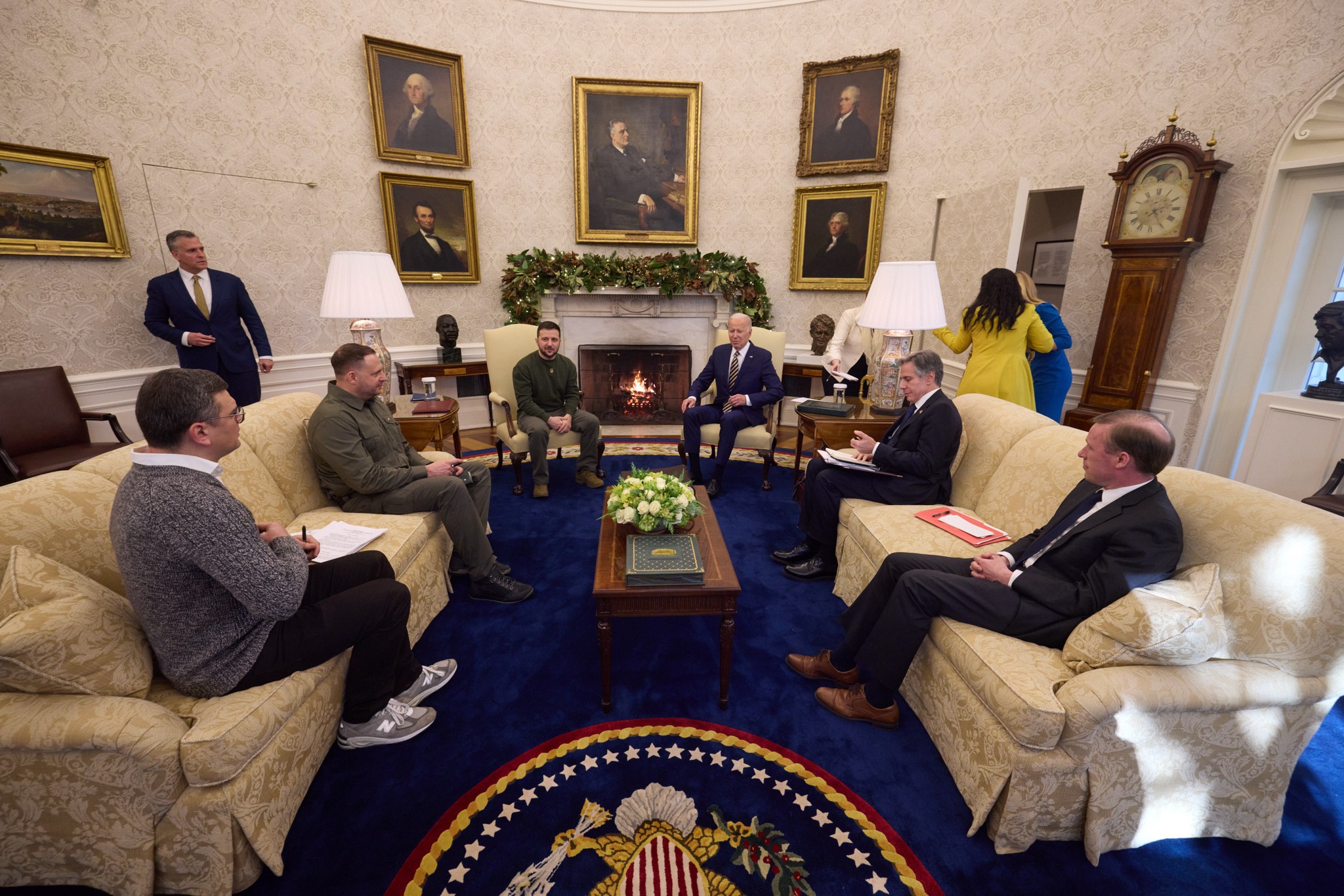 Украинският президент Володимир Зеленски пристигна във Вашингтон в първото си задгранично пътуване от началото на руската инвазия. Американският държавен глава и съпругата му лично посрещнаха Зеленски в Белия дом, където малко по-късно дадоха съвместна пресконференция. Двамата подчертаха нуждата от сплотена работа и единствено.