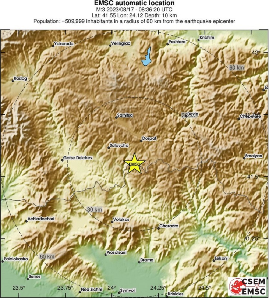 Дълбочината на земния трус е 10 км., показва справка в Европейския сеизмологичен център.
