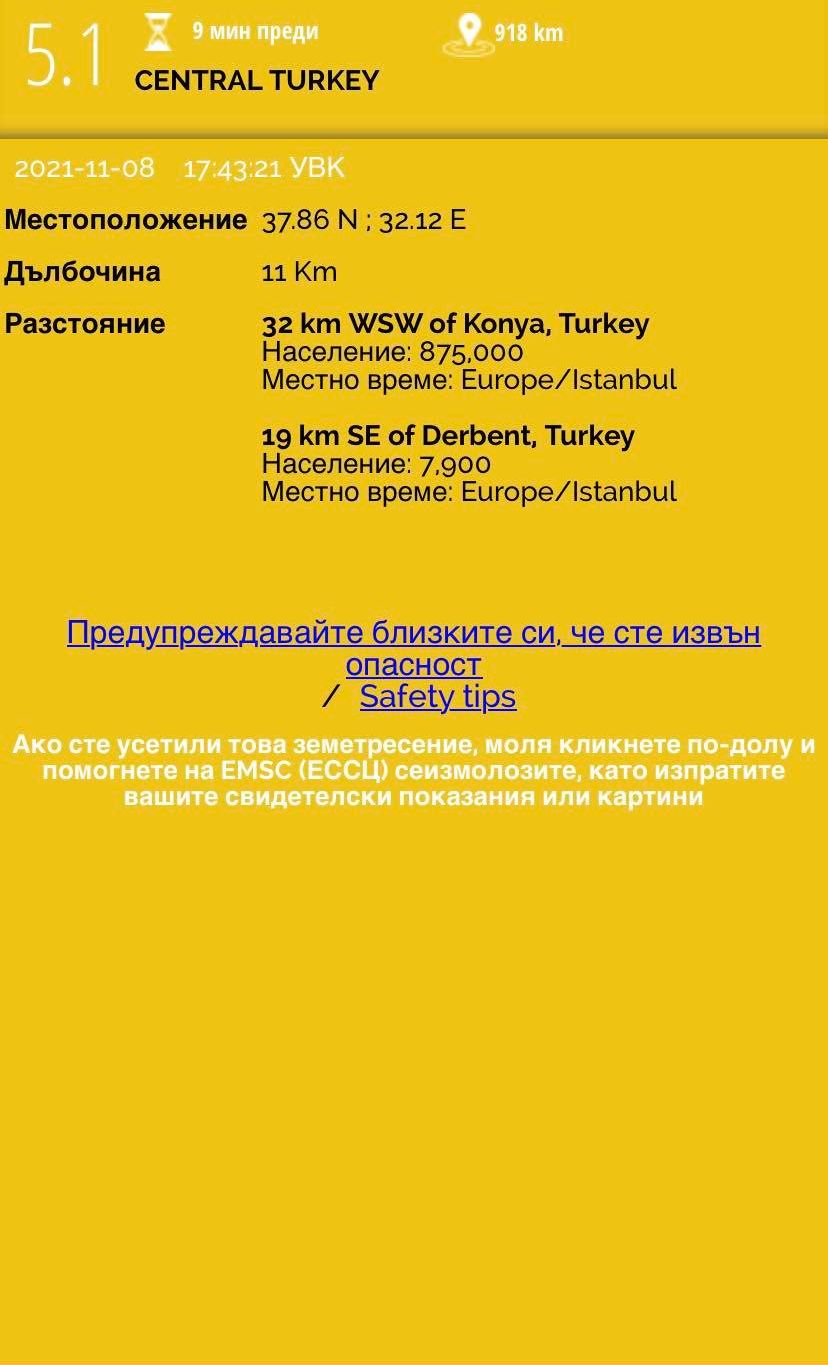 5,1 по Рихтер удари Централна Турция преди минути, сочат данни от Европейския сеизмологичен център.